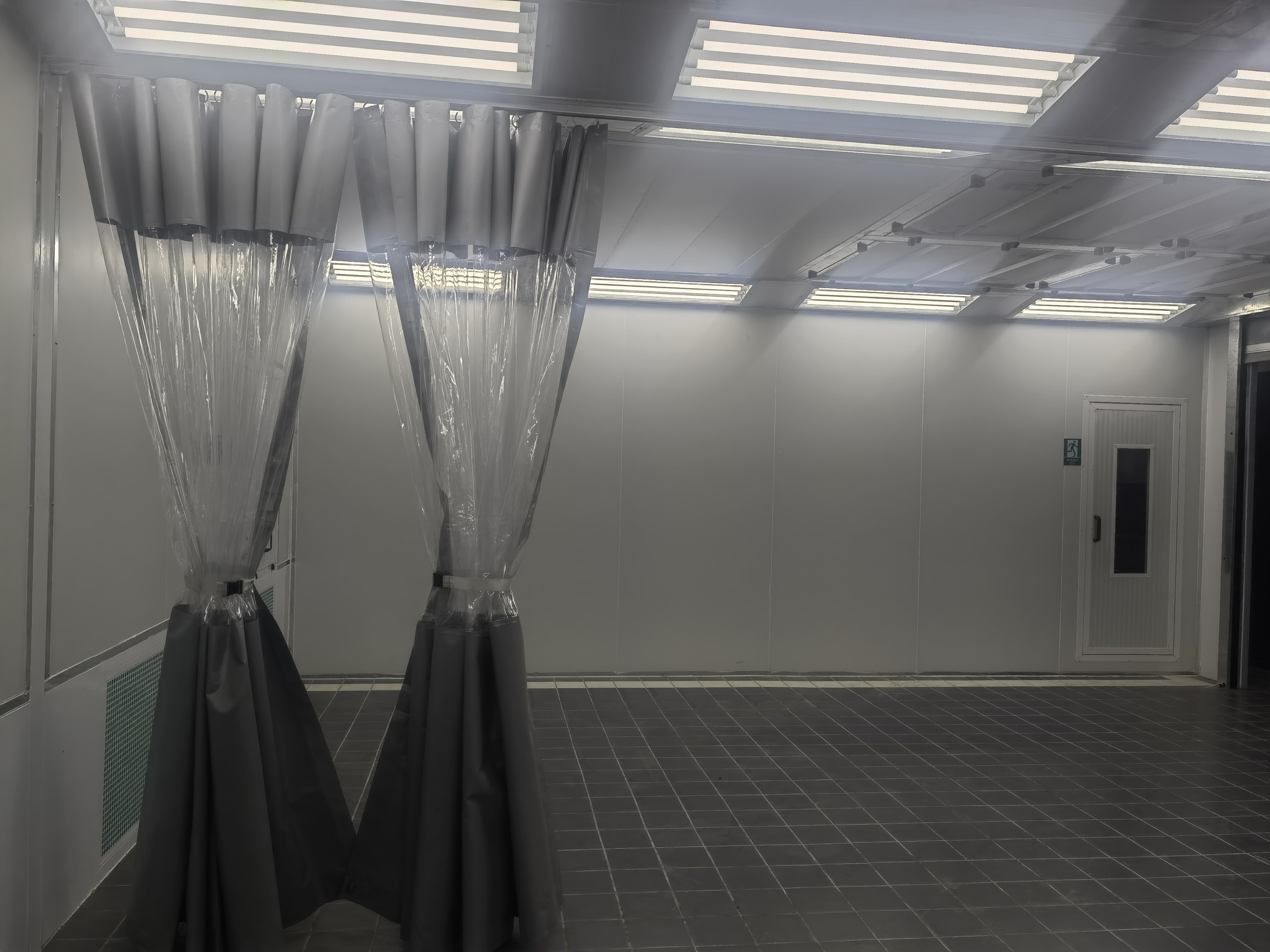 Obudowa z kurtyn PCV W przeciwieństwie do stałej kabiny, Stacja Przygotowania wykorzystuje przesuwne kurtyny PCV.